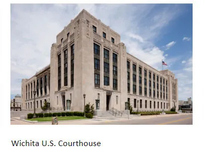 Handicapped parking is available along 3rd Street near the Courthouse. Limited designated handicapped spots are available, or anyone with a handicapped tag may also park in any metered parking spot along 3rd Street (for free). Several parking options are available near the courthouse including the Epic Center garage at the corner of 2nd and Main Street, the public parking lot at the far west end of the Municipal Court (tall black city building), and the Sedgwick County Parking Garage located at 603 N. Main Street. Some lots have attendants while others require you to have exact change. Parking fees vary but on average cost $5.00 per day. Jurors may also park in one of the free spots available at the far south end of the parking lot located directly south of our building. The lot has 23 free parking spots available that will be marked as USDC (United States District Court). They are available on a first come first serve basis. The Court is unable to validate or waive parking citations.